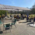 Even later belanden we toch bij de forellenvijver en zoeken een lekker plekje op het terras in de zon natuurlijk.