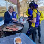De jeugd atb-ers zijn al binnen en zitten te wachten op een lekker broodje met een hamburger. Als ze allemaal voorzien zijn, zijn wij aan de beurt voor zo’n lekker broodje met hamburger verzorgt door Henriët en Ina