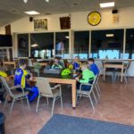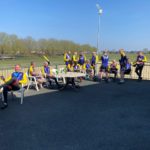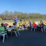 Gezellig schuift iedereen aan, maar wel aan het randje in de zon. Een lekker drankje erbij en onze dag kan niet meer stuk. Geleidelijk komen ook de andere groepen binnen en nestelen zich allemaal op het terras met een lekker broodje en een drankje.Wat een prachtig begin van hopelijk een prachtig raceseizoen.