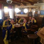 Beneden kleed ik mij aan en stap op mijn oude trouwe carbonros op weg naar de sporthal. Als laatste vertrekken we met 15 man de regen tegemoet die van het noorden langzaam naar het zuiden trekt. Met een klein beetje wind tegen rijden we bijna rechtstreeks naar Wijhe. Het weer is nog steeds goed en ik denk “als we het zo kunnen houden hebben we mooi mazzel”. Maar ja, vergeet het maar…. net voor Zwolle komen de regenjasjes tevoorschijn en houden we even stil om deze veilig aan te trekken. Op het industrieterrein van Zwolle zit onze tourleider niet op 1 lijn met zijn navigatie en moeten we even zoeken om de juiste weg naar het koffieadres in Hasselt te vinden. Hier aangekomen trekken we die natte zooi maar ff uit en doen ons tegoed aan een lekkere bak troost. Bij de handendroger in de wc staat Dekkers in een positie waarin je normaal gezien niet je handen droogt….. Hahahaha, “zo kunnie mooi de rugge dreug’n met dat dinge”