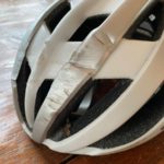 Rudy stuurt een fotootje van zijn helm en is blij dat hij er eentje op zijn hoofd had.