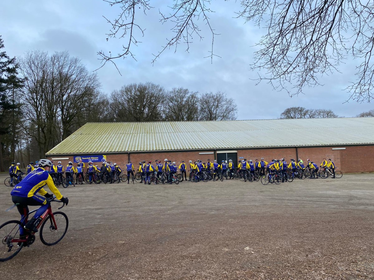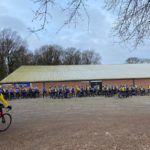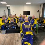 Bij het tourhoes is het al heel erg veel geel/blauw en er komen van alle kanten nog TCR leden aanfietsen.