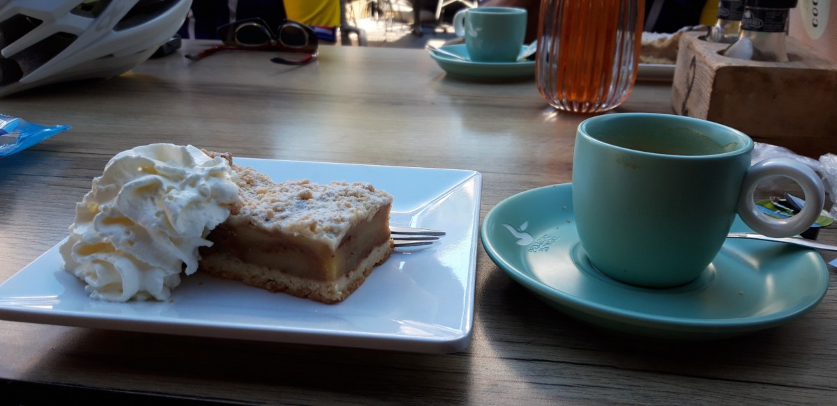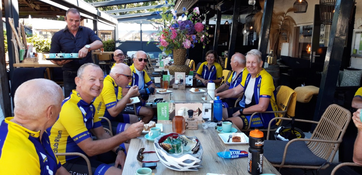 Zo komen we langzaam in Vierhouten aan voor koffie en Appeltaart bij Restaurant de Vossenberg.