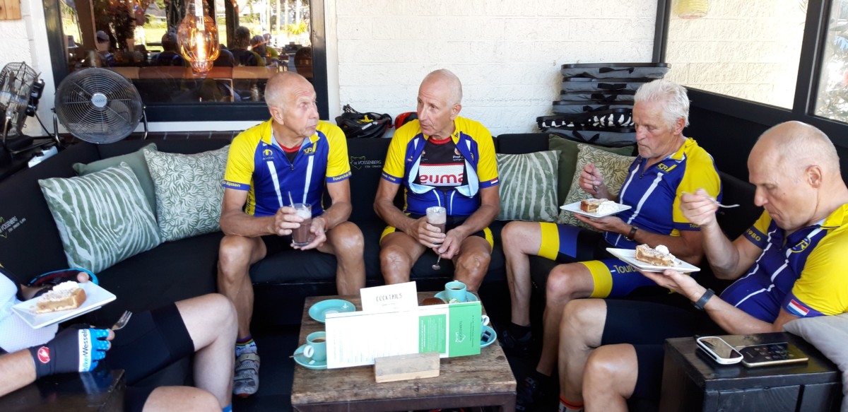 Na eerst eten ,krant lezen en aankleden dan de fiets gepakt om op weg te gaan naar het Tourhoes om te verzamelen.