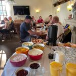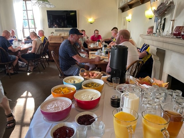 We sluiten ons aan voor een prima ontbijt dat we ons goed laten smaken. Dan wordt de garage weer geopend en komen de fietsen weer tevoorschijn die hier en daar weer worden gecontroleerd en waar nodig opgepompt.