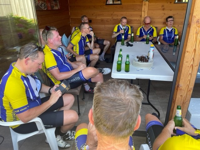 Aangekomen in Rijssen ploffen de meesten lekker in de tuin of in de serre neer en de bekende plopjes klinken met een diepe zucht van velen,” dat hebben we echt wel verdiend”. Even later komen de pannenkoeken op tafel en worden door een ieder voorzien van poedersuiker of stroop. Man, wat smaakt dat lekker………….