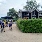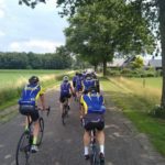 Na een aantal kilometers klonk de eerste roep ‘lek’. Vakkundig werd snel een anderebinnenband gemonteerd en vervolgde de groep zijn weg.