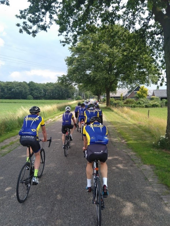 Met nog 20 kilometer voor de boeg was er een korte stop om de bidon te vullen.Tijdens het laatste stuk richting Rijssen deed zich een vraag op in het peloton.
