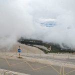 “The day after”, de dag na aankomst is de dag waarop normaliter het klimwerk rustig wordt opgepakt. Het laagland tempo ingeruild voor de hogere cadans en de veel lagere snelheid in de bergen. Aangezien Clemence woensdag naar huis vertrekt, wordt besloten om vandaag de Mont Ventoux op het programma te zetten, niet morgen, want er wordt windkracht 8 voorspelt op de top. Het is wikken en wegen, vandaag, maandag, is het wel fris, pas vanaf morgen gaat de zon echt schijnen. Om 0900 uur worden de fietsen aangetrapt, iets wat Ronny al een uur eerder deed, dit in de verwachting dat hij een uur meer nodig heeft om de top te bereiken, over realiteitszin gesproken. De bus gaat mee als ondersteuning, zal nodig zijn, gezien de gevoelstemperatuur van min drie graden die op de top wordt verwacht. In Bedoin is het even schrikken, het hele dorp is afgezet in verband met de maandagmarkt. Gelukkig is er altijd vriend Garmin en niet veel later rijdt de bus op de D974 en zien we 7 fietsers passeren. De goeisten op kop, Willy, Bart en Henk, met achtereenvolgens Henrico, Clemence en Frank. Opvallend de hoeveelheid mede fietsers, van allerlei pluimage, dat zich het zelfde doel heeft gesteld, de top bereiken. Een bejaard mannetje rijdt wel heel vlot naar boven, ogenschijnlijk fluitend, nadere inspectie leert dat hij nauwelijks zichtbaar een dikke achternaaf heeft met wel een hele grote bidon, een bijna onherkenbare E-bike. In de zelfde vorm ook MTB’ers. Op de berg, na het bos, is de wind goed voelbaar en het is koud, flarden van mist en zo nu en dan een dik wolkendek. Bovenop duiken de mannen de bus in om zich op te warmen en voor droge kleding. Bart was als eerste boven in 1 uur en 35 minuten, gevolgd op 2 minuten door Henk en wat later Willy. Clemence doet het voortreffelijk en eindigt voor Frank. Henrico had het deze eerste, niet geplande, lange klimdag zwaar en sluit toch monter de rij.