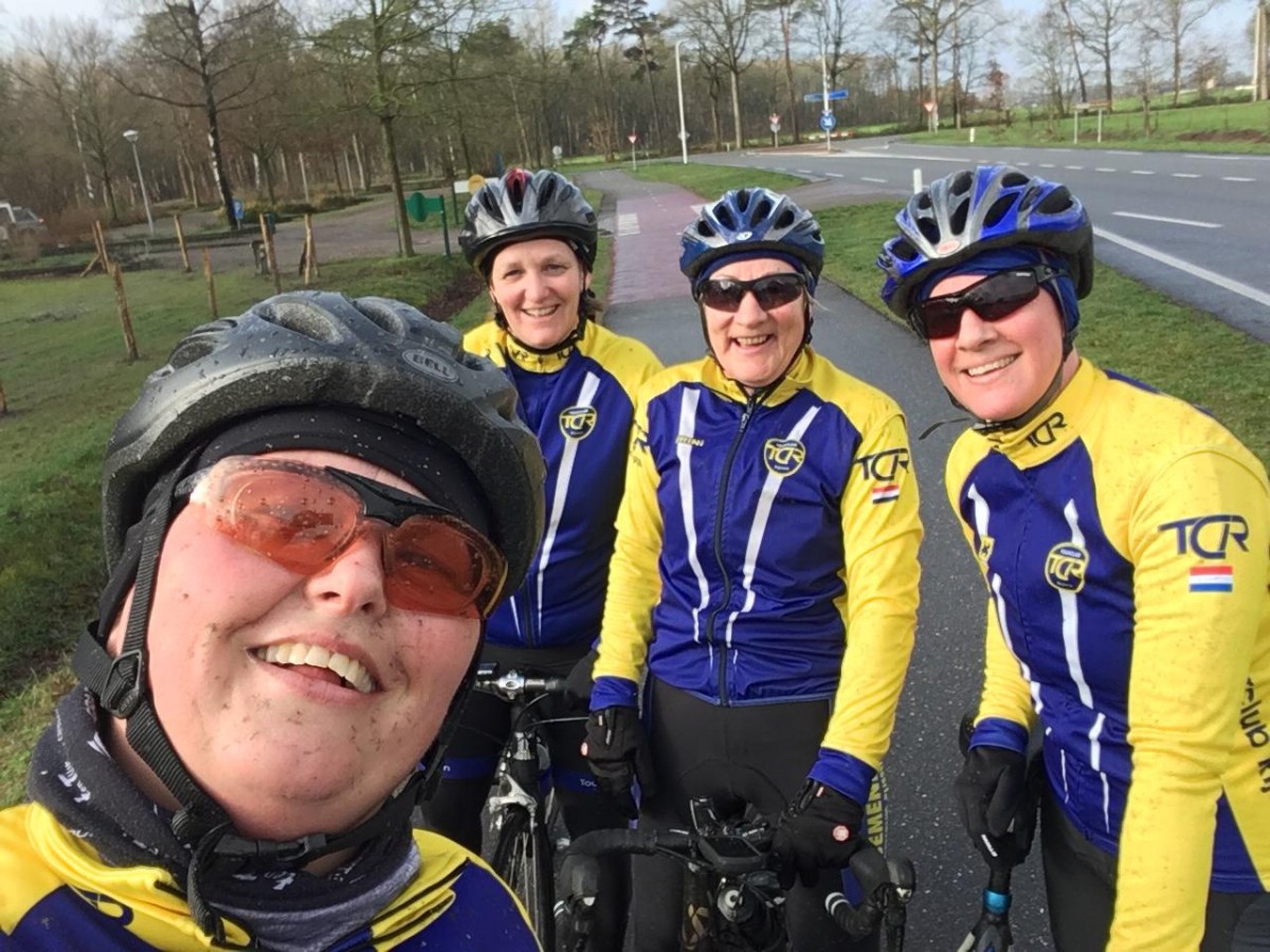 Aantal leden: 4Vanochtend gingen we met 4 dames op pad. Voor mij de eerste keer op de racefiets. Best wennen na een heel seizoen op de mountainbike crossen door het bos. Nu probeerde ik elk takje, steentje en andere obstakels te ontwijken, bang om lek te rijden met die dunne bandjes. We fietsen via Goor naar Diepenheim. Daarna door Markvelde (had ik nog nooit van gehoord, misschien toch maar wat vaker buiten Rijssen kijken). Hoe langer we onderweg zijn, hoe meer de zon gaat schijnen. Net als we Hengevelde binnenrijden… lekke band ! Mirjam, onze redder in nood, verwisselt de band alsof ze dit elke dag doet. Het was in een mum van tijd gebeurd. We vervolgen onze weg richting Bentelo en Delden. Daarna een stuk tegen de wind in richting Enter. Hier drinken we een kop koffie bij de familie Knobbe !