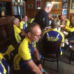 Zo fietsend en genietend zijn we al bijna bij ons koffieadres. Als ik naast Johan fietst zegt hij,”Weet je hoeveel auto’s we tot nog toe zijn tegen gekomen””? Nou nee, daar heb ik niet op gelet. Hij zegt, ik wel deze keer, ik heb er 7 geteld.
