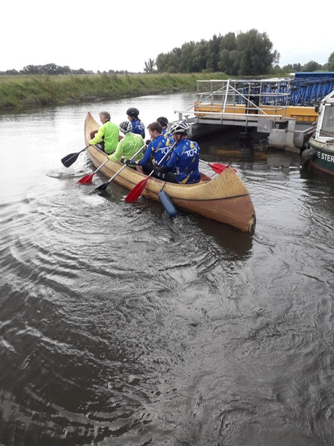 Terugkomend wacht ons het tweede deel van de tocht, en ook dit is een prachtige route langs de IJssel en Apeldoorns kanaal. De regen laat zich niet meer zien en bij het pontje van Olst kunnen de regenjasjes uit, en opgeborgen worden.