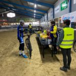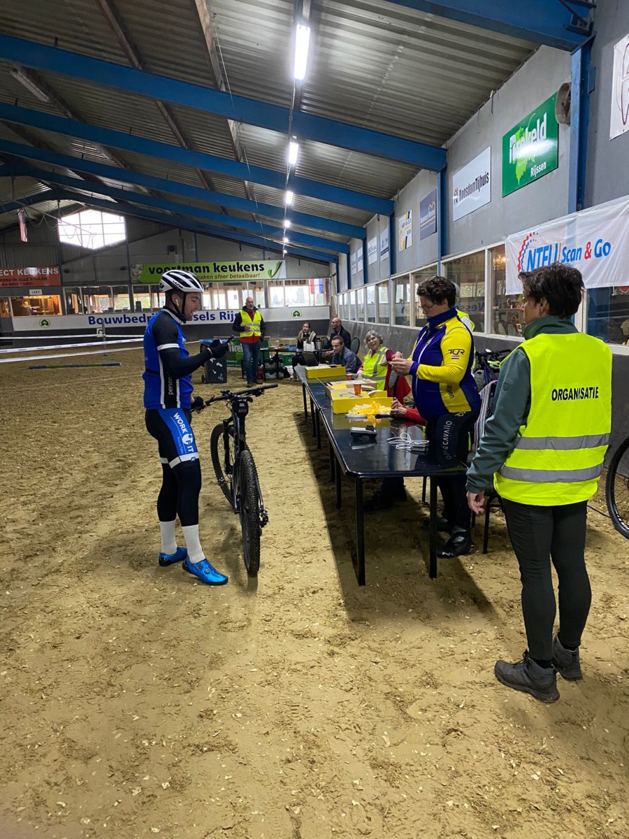 Na eerst een lekker kopje koffie/thee voor ons, druppelen de eerste deelnemers al binnen en dat loopt de komende 2 uur gestaag door. Veel deelnemers zijn al vooringeschreven en dat werkt prima. Om 9.00 uur ( het wordt 8.45 uur) kan er gestart worden met eerst een rondje door de manege en even verderop duiken ze de route op.
