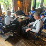 Ondanks het pittige karakter van de tocht houdt Rene het peloton keurig bij elkaar. De verschillen worden voelbaar, maar niet vervelend – het type rit dat verbindt. Als we Rossum naderen, komt Café Peulke als een warm bad in zicht. De uitbater staat er stralend bij: 17 TCR-leden op de stoep, dat doet de omzet geen kwaad.