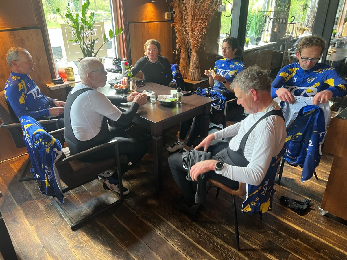 Het lijkt wel alsof het elke zes maanden Pasen is, zo snel vliegt de tijd. Maar sommige tradities verliezen nooit hun glans – zeker niet als er fietsen, gekookte eieren en tegenwind bij betrokken zijn. Op deze frisse Paaszaterdagochtend vertrekken 15 mannen en 2 vrouwen (T3) klokslag 08:00 uur bij het Tourhoes voor de traditionele TCR Paastocht naar Café Peulke in Rossum.
