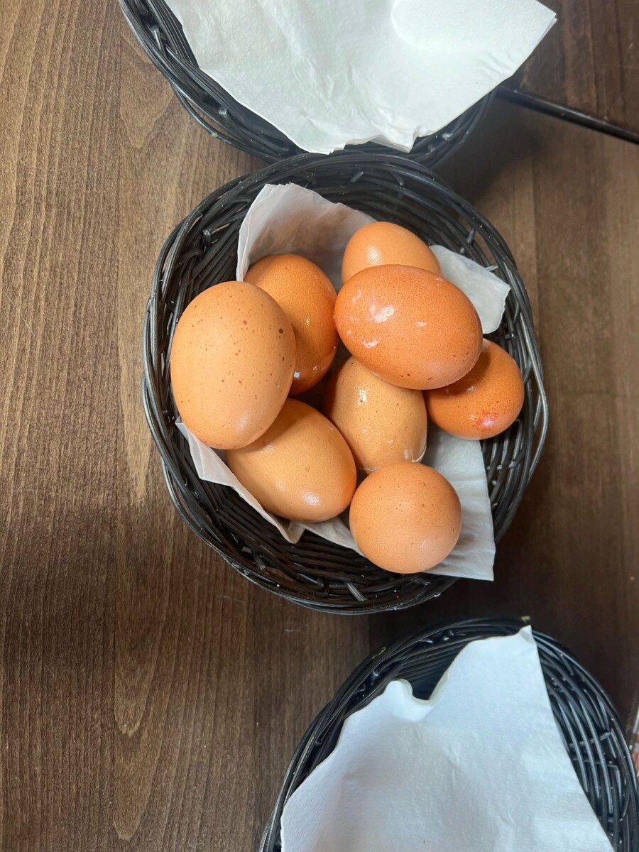 Binnen worden we onthaald op één soort ei: hardgekookt, uiteraard. De vooraf via Whatsapp gevraagde varianten als roerei, gepocheerd of ‘scrambled met een snufje Himalayazout’ zijn vriendelijk doch beslist door Rene afgewezen. Traditie is immers traditie. De koffie smaakt goed, de eieren glijden naar binnen, en ondertussen worden de wereldproblemen binnen 20 minuten besproken én opgelost. Pasen in optima forma.