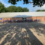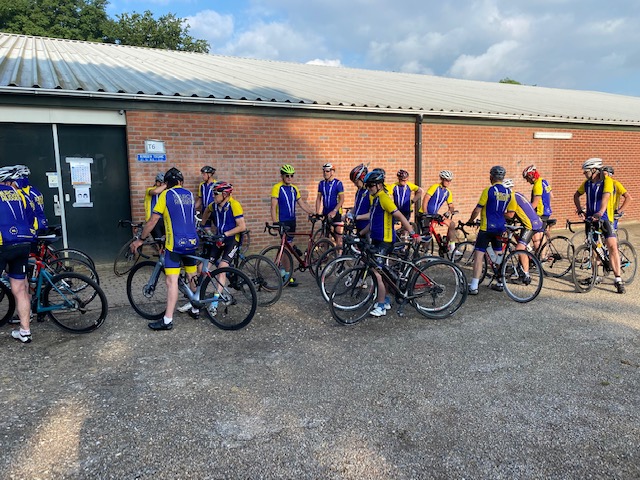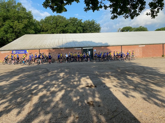 De diverse groepen staan al te trappe(le)n om op pad te gaan.