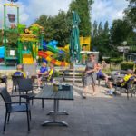 We rijden veel onder de bomen en dat voelt prettig koel aan. Zo fietsend en pratend komen we aan bij ons