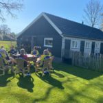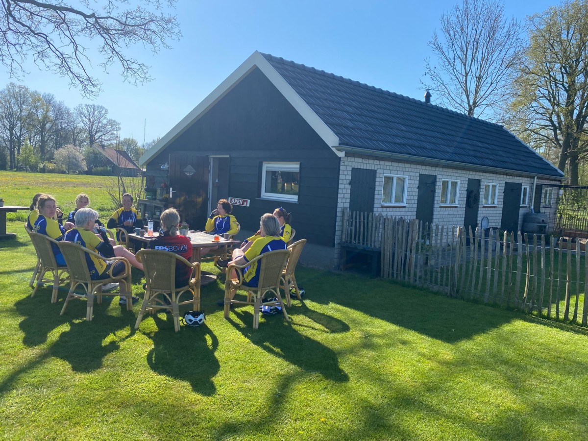 We zitten met z’n allen in een prachtige tuin en vergeten bijna dat we ook nog op tijd terug moeten zijn in Rijssen.