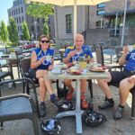 Na 60 kilometer: cappuccino of latte voor de fijnproevers, en een vers gebakken punt aardbeiengebak of appeltaart, die moeten door oma’s in de wijde omtrek in elkaar gezet zijn, 100% home made.