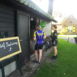 We zaten net aan de koffie toen kwam er nog een mannelijk TCR lid eraan, die was alleen gaan fietsen vanmorgen. Hij kwam er gezellig bij zitten. Even gekletst en de dames zijn weer verder gefietst.
