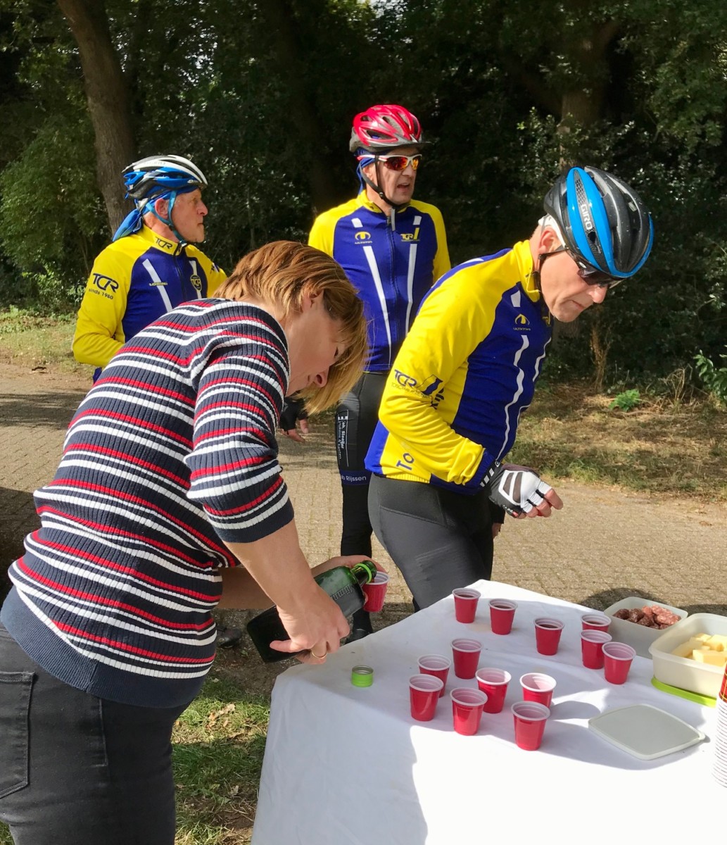 Het is altijd afwachten voor de eerste stop komt, wel meegemaakt dat bij de schaapskooi aan de Markelosche weg al de eerste borrel klaar stond
