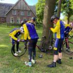 Hier wordt nog even een korte stop ingelast, en waar dan de heren snel alle beschikbare bomen opzoeken, zien we nu de dames hun fietsen bijna aan de kant gooien om met gezwinde spoed de bosjes op te zoeken. 😂😂😂😂😂