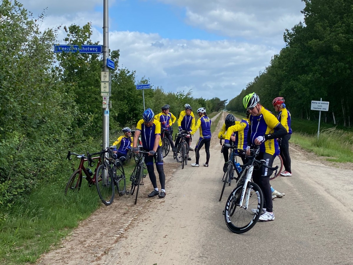 De band wordt snel verwisseld en we kunnen weer door. Daarleveen, Vroomshoop binnendoor richting de Oldemeijer