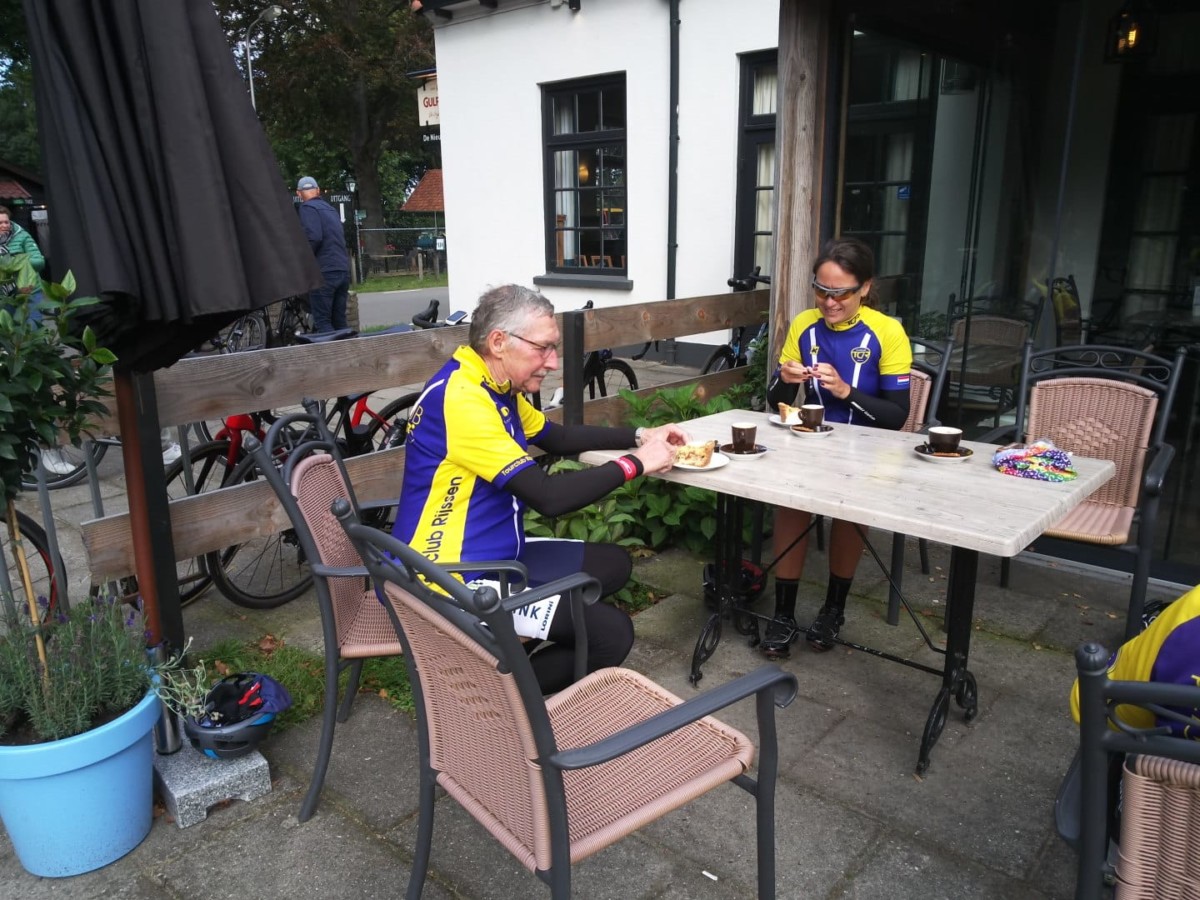 Heerlijk relaxt meefietsen met de groep, geen gestress voor mij