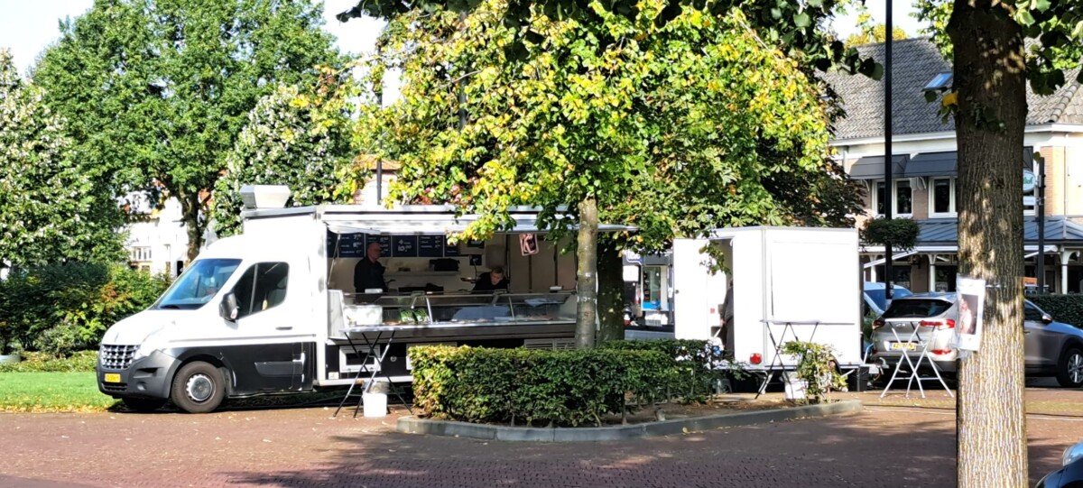 De bediening maakt nog wat foto’s op ons verzoek en dan zit het er in Vorden weer op.Als de foto’s goed zijn bijgevoegd zie je op één daarvan een viskar waar Gerrit (maskop) Nijland ooit een lekkerbek in liet pakken en deze in zijn wielershirt meenam. Overigens na eerst 2 haringen weggewerkt hebben.