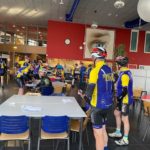 Dan zien we van ver al wat van onze jeugdleden van de atb groep staan zwaaien op de weg,