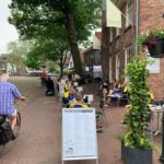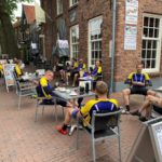 We nuttigen de koffie buiten op het terras in het centrum van Lochem. De 1,5 meter respecteren we keurig. De koffie is heerlijk, maar de bediening is onervaren en niet al te vlug, dus we moeten rustig de tijd nemen, ook niet verkeerd.