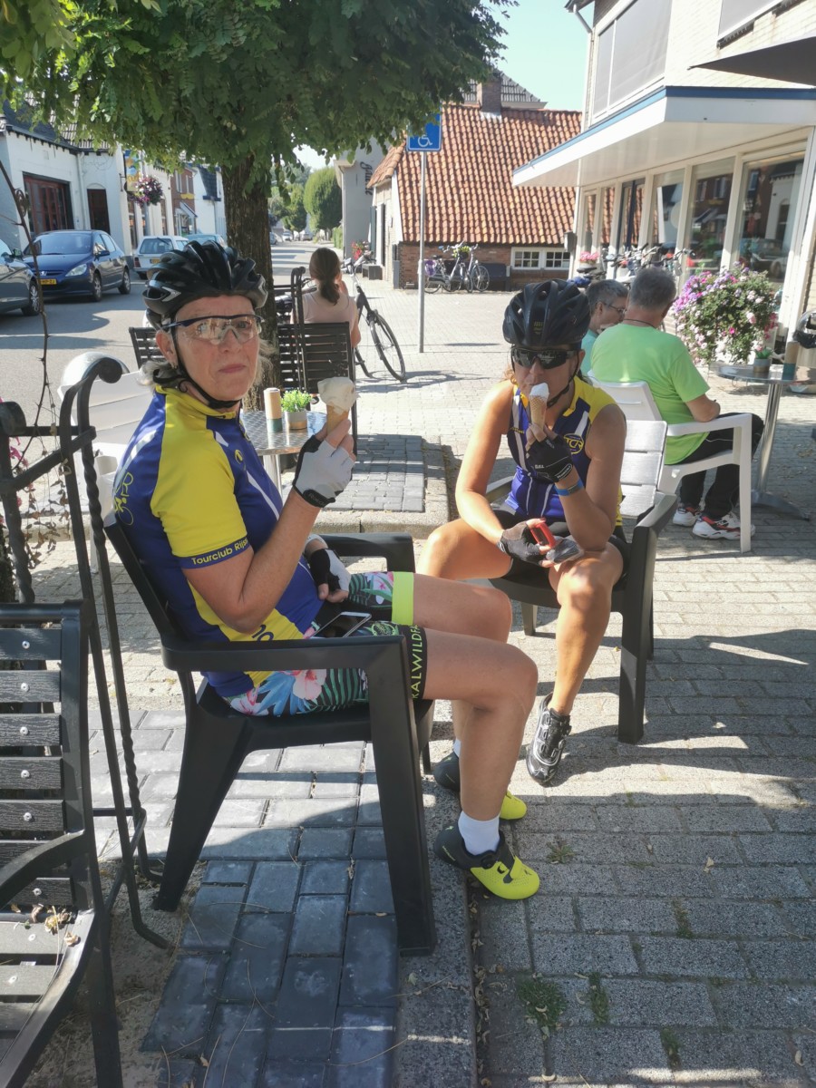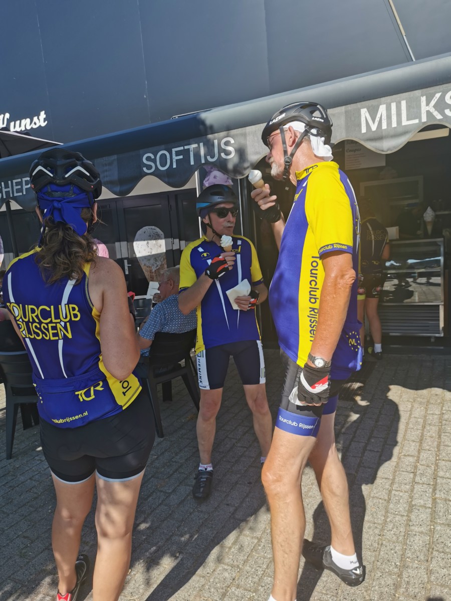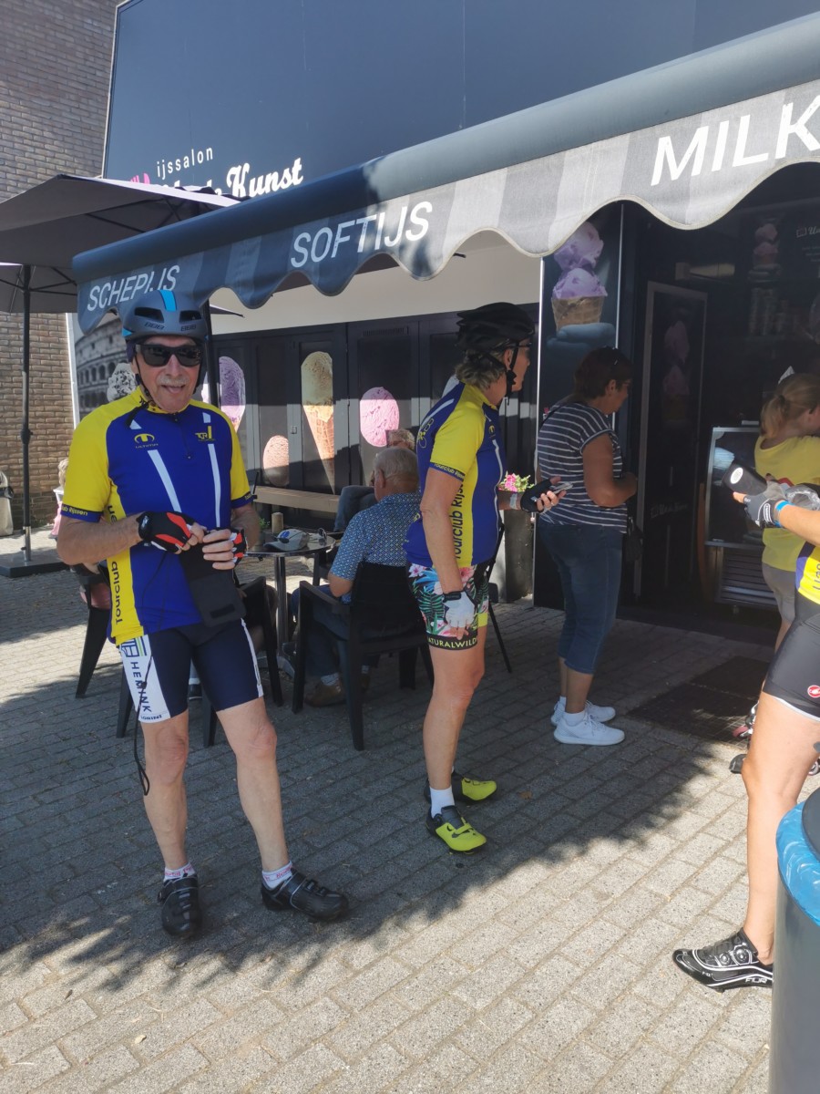 Goed idee zeg ik echt ijsjes weer vandaag. Gerda trakteerde, dank hiervoor. We trappen hem weer aan, Gerda moest nog even een ronde powerbank aan de telefoon knutselen.