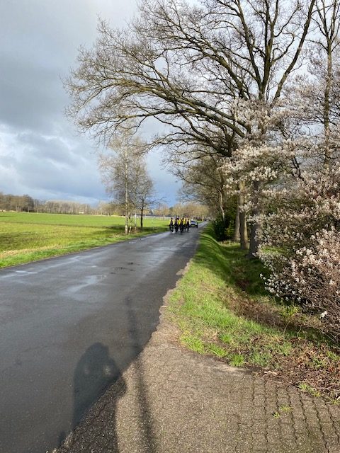 Via Rectum achterlangs Wierden, richting Den Ham en langs de Lemelerberg en Lemelerveld richting Ommen. Zoals we al “gewoon” zijn, over prachtige verkeersluwe wegen en paden. Genietend van de vele bloeiende krentenbomen, een prachtig gezicht, de lente komt er echt aan. Maar april doet wat het wil.