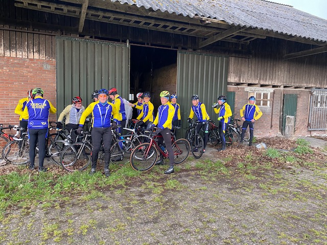 Als we net weer op de fiets zitten horen we het sein, “” technisch lek”” Deze keer is het Johan S. en aan alle kanten krijgt hij advies hoe hij dat het beste aan kan pakken met dit koude weer. Hij zegt dat het na wat zoeken, prima gelukt is.😉😉😉😉😉