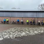 Als we weer bij de ingang komen, komt de delegatie uit Rijssen er al aan fietsen.