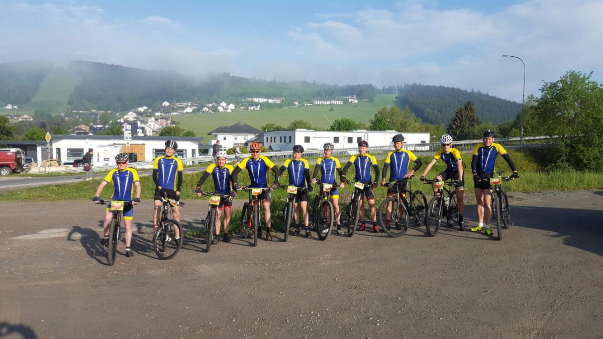 De sfeer is vanaf het begin goed ( Hans ingehuurd) en ik proef een lichte gespannenheid. Hoe zullen de ervaringen zijn: 95 km. mountainbiken en een slordige 2700 hoogtemeters in niet niks. Rond half 2 ’s middags zijn we in Elleringhausen bij het knusse Familien Hotel Kameleon op 10 km. van Willingen. De Nederlandse eigenaar is vriendelijk en we kunnen gelijk op de kamers. Prima voor elkaar.