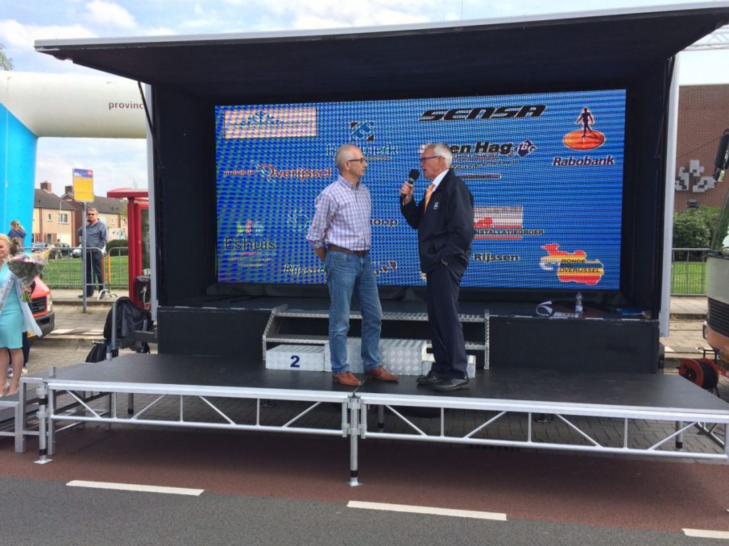 Henk Krukkert (T2) hoorde tot zijn grote verbazing zijn naam omgeroepen worden bij de finish Ronde van Overijssel. Ingewijden waren er achter gekomen dat Henk de afgelopen 25 jaar als vrijwilliger actief was bij de Ronde. Al die jaren voor “de hele dag”. Met tal van functies om het evenement gaande te houden.
