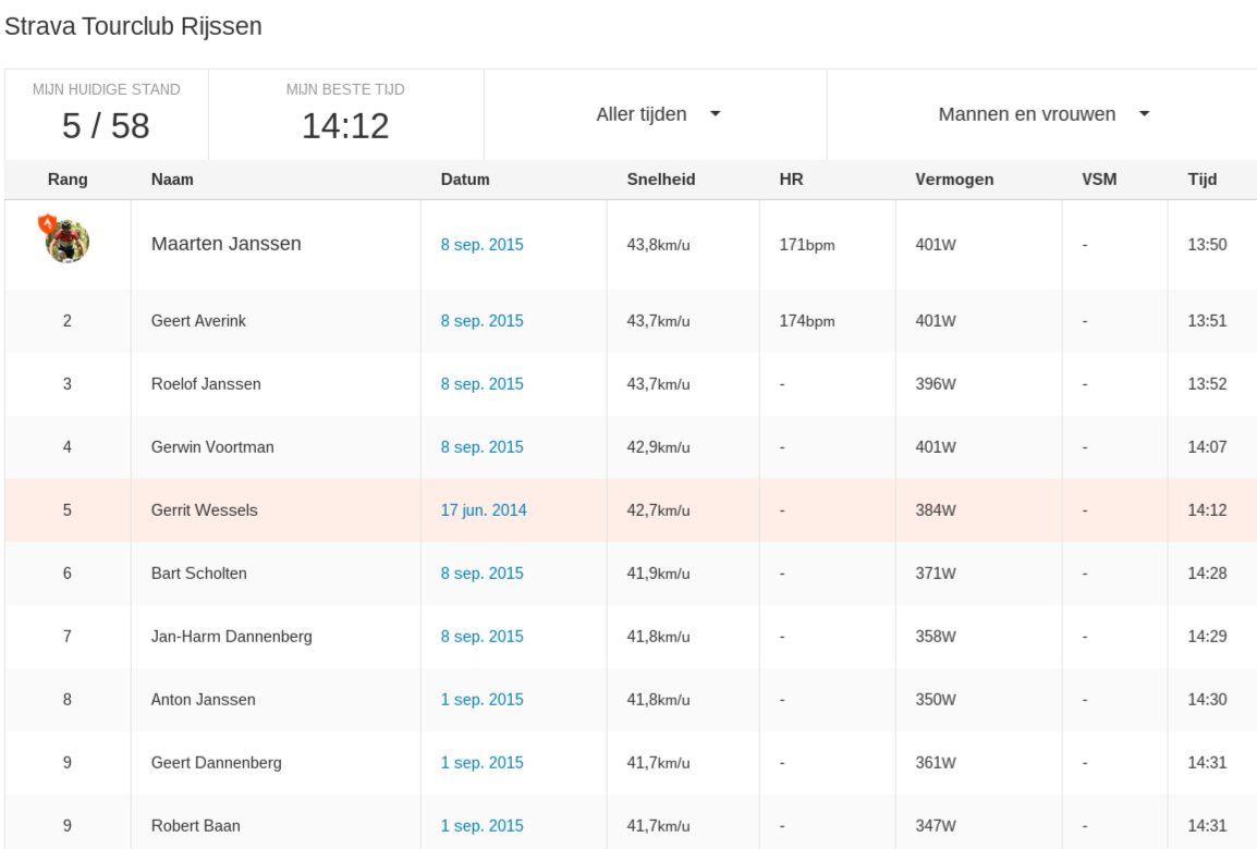 Na de bijna gelukte poging van vorige week, 1 sep, waarbij het record op 12 seconden werd genaderd, Vanavond, 8 september, nogmaals een ultieme poging, Zo te zien aan de deelnemerslijst werd niets aan het toeval overgelaten en kwamen de beste paarden in de baan. Geert, Robert, Roelof, Gerwin, Bart, Jan-Harm, Anton en wie anders dan, speciaal voor de recordpoging opgetrommelde, Maarten Janssen die zich voortaan het snelste TCR lid mag noemen in de Holterberg en niet alleen van TCR, maar ook 1e plek Algemeen.