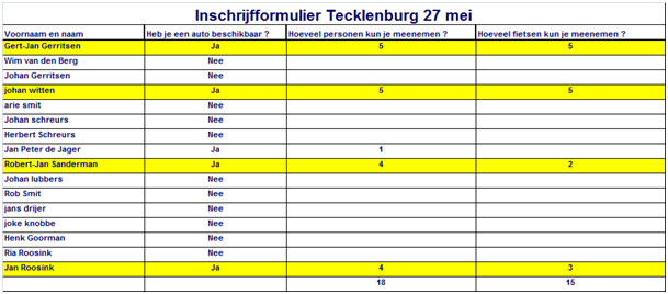 Aanwezig 06:45 uur voor het beladen van de auto’s 07:00 uur vertrek naar Tecklenburg