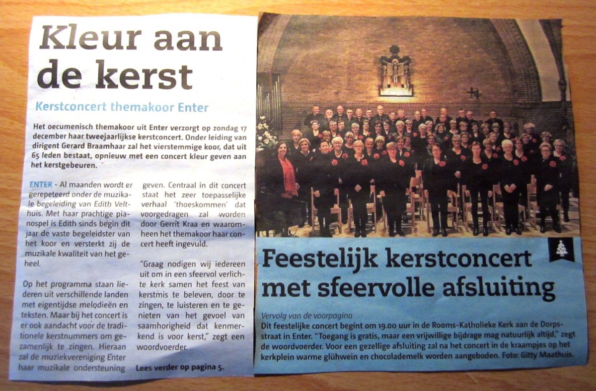 Op zondag 17 december is het traditionele kerstconcert in Enter. Joke Knobbe nodigt TCR leden uit om te komen luisteren.