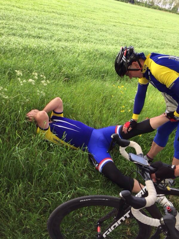 • Henrico: tot grote teleurstelling van hem zelf (de overigen hebben daar minder last van….) voorlopig uitgeschakeld. Het verhaal is te bizar om te herhalen. Het gebroken sleutelbeentje en naastgelegen ribje, houden hem een week of 4 van de fiets. Het is geen toeval dat sinds deze noodlottige aanrijding met een lichtmast, de anderen het trainingstempo zijn gaan opvoeren. Leek het in januari nog “kat in het bakje” om voor Gerrit te finishen, dit wordt een moeilijk verhaal. Evengoed, wel een pluim voor zijn enthousiasme. Een 6e plek.