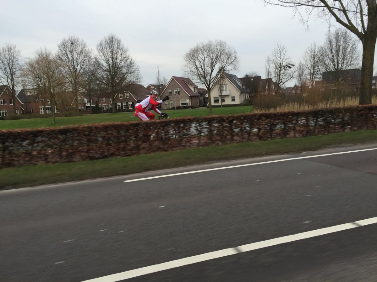 De maand februari en de 1e helft van maart kan de boeken in als een periode van stabiliseren, km maken, sneeuwpret voor een enkeling en de die-hards die op zondagochtend menen, hoe nat het ook is, kilometers te moeten maken. Hier en en daar een ziekte gevalletje. Het vraagteken Bos begint langzamerhand een uitroepteken te worden, een onwaarschijnlijk herstel heeft zich ingezet. De grand-old man zit inmiddels weer op de fiets en komt in de Holterberg niet als laatste binnen. Een waar medisch mirakel. Een normaal mens was na dit trauma op krukken, ondersteund door de hele boerenfamilie, uitgezwaaid door het verplegend personeel, het hospitaal uitgestrompeld. Het andere ziekenboeg figuur Ronny strooit voortdurend allerlei medische termen over de groep uit, gelardeerd met afbeeldingen van pufjes, inhalers en medicijnen, wellicht hopende hiermee nu al een excuus te hebben om na zonsondergang op de Alp te kunnen arriveren. Jan-Henk heeft (gelukkig) toch minder hard getraind dan sommigen vreesden, hij kan mee in “de berg”, maar meer kunnen we er niet van maken. Zijn van nature aanwezige vasthoudendheid blijft een gevaar. Frank, die beter dan ooit de winter doorkomt, gaat last krijgen van het “Bram & Lotte” effect. Het dilemma om langs de gezellige voetbalvelden te staan op zaterdagochtend, staat haaks op het ronddraaien van zijn lange benen. Hoe dit verder gaat ? Een plek bij de eerste 7 zit er zeker in. Het fenomeen Clemence doet allen de wenkbrouwen fronsen, de krachtpatser verbeterd met de week en combineert dit met sponsoractiviteiten voor het Profok Cyclingteam. Als de Clemence progressie zich doorzet, dan zal Willy nieuwe konijnen uit de hoed moeten toveren. Over Willy gesproken ? Tja, Mr. “Vus te vroge”, lijkt zomaar een achterstand te hebben in kilometers. Klaagt over kramp (net als de afgelopen 30 jaar), rijdt schokschouderend rond en doet denken aan vorig jaar, toen hij na een operatie plotseling in de Dolomieten uit de as bleek te zijn herrezen. Zijn klimgeitbuddy Henk, 1 pot nat, je hoort hem niet, ziet hem niet, maar zo nu en dan komt Henk even langszij om de beentjes te testen, grijnst een ogenblik en laat zich weer terugzakken, iedereen gissend naar zijn conditie. Ja, zijn hartslag is in de ochtenduren 3 slagen hoger dan vorig jaar, nou en ? Henrico laat ons hoopvol weten, dat zijn “lijn-campagne” niet zo succesvol is als vorig jaar. jammer voor hem kan hij op zaterdagochtend geen km maken en moet het dus geheel op eigen houtje doen. Knap, maar helaas pindakaas…. er kan nog geen streepje door, maar een heel dun lijntje misschien ? Achteraf is een koe in de kont kijken, maar met het binnenhalen van Bartje is ook het paard van Troje van stal getrokken Deze jongeling rijdt ongenaakbaar als een testosteronbom rond, voortgestuwd door paringsdriften, lijkt zijn conditie en wil om overal als eerste te zijn, doorslaggevend te worden. Wellicht dat hij zijn energiebalans ontwricht door ontoelaatbaarbaar toe te geven aan zijn drift om de menselijke soort in stand te houden. Wekelijks een doosje eieren naar de Banisweg zou hem van de fiets kunnen houden. Of hij blesseert zich in een houding met zijn lieve dame, waar Joeri van Gelder goud mee kan winnen in Rio. Ondergetekende ? de situatie is stabiel, het gewicht blijft een probleem, gezelligheid kent geen tijd, verjaardagentijd en verkeerde vrienden staan haaks op de verkeerde kant van de 90 kg grens. We doen elke ochtend weer ons best om in de loop van de dag te merken dat de grote witte deur met dat kleine lichtje aan de binnenkant het vaker wint dan een plek bij de eerste 3. De eerste plek afgelopen zondag in “de Berg”, verbloemt nu nog het te hoge BMI, maar in juli zal dit niet te maskeren zijn. Nog 13 weken te gaan !!!