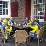 Op de weg van Markelo naar Rijssen mag ik nog een keer op kop, waar ik vol goede moed aan begin. Ik klets wat terug tegen mijn medekopgenoot (is dat Nederlands?) en ineens brult de tourleider dat ik achter hem moet komen fietsen. Verschrikt voldoe ik aan zijn verzoek en kijk snel op m’n km-teller: 23.5. Oei, inderdaad maar beter als ik er even achter fiets. Wim geeft een bemoedigende schouderklop, en Gerrit kan tussen zijn ademhalingen door zeggen dat ik niet de enige ben die het moeilijk heeft. Altijd fijn om te horen!