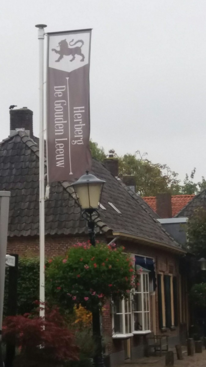Daar is het al druk bezocht met mensen in het blauw-geel. Om iets over negenen gaan we met z’n achten op pad. Het doel vandaag is Bronkhorst. Peter geeft Rob hiervan de schuld, die afgelopen week gezegd heeft dat hij daar wel weer eens heen wil. Bronkhorst levert niet erg goede herinneringen op: gouden eieren en nog iets, maar dat ben ik even kwijt. We beginnen met de Rijsserberg in een flink tempo. Tenminste, als je net je bed uit komt rollen en het nog een beetje koud hebt wel. Vlak hierna gaat Marinus eraf, hij wil liever een rustig rondje fietsen dan 90 km met deze groep mee te gaan. We slingeren langs de A1 in de richting van Laren. Langs Almen, Wichmond en Baak komen we in Bronkhorst. Bij het café waar Peter van plan was om koffie te drinken, is er een feestje. De eigenaar vindt het niet goed dat we er bij zijn, helaas! Op zoek naar iets anders dan maar. We strijken neer bij de overbuurman, Herberg de Gouden Leeuw. We gaan buiten zitten, want, heb ik vandaag geleerd, als je bij de kachel gaat zitten krijg je het straks veel te koud (uiteindelijk was het de laatste helft van de pauze buiten ook redelijk fris, en op de dijk alsnog erg koud..) Tja, en met de keuze van deze Herberg komt ‘Bronkhorst’ niet veel positiever uit de beoordelingen. Blijkbaar hebben ze hier niet alleen gouden eieren, maar ook gouden koffie/thee. De grootte van het kopje koffie is hier niet naar, de prijs wel.