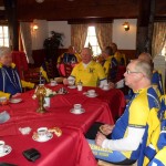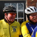 Ook T3 ging van start. Wim Grooten was gekomen voor de foto maar fietste verder niet mee. Hij moet de komende tijd geholpen worden aan de aorta. We wensen hem daarbij het allerbeste toe en hopen dat hij toch in staat zal zijn om met ons zijn favoriete ritten door Twente als toerleider nog op te pakken. We reden om Enter heen en langs het kanaal. De wind speelde ons zeker parten. Er werd door Wim gezorgd voor snelle aflossing op kop. Als groep kwamen we via allerlei broeken tussen Enter en Goor uit eindelijk bij de Pothoek uit. Dat er op weg naar deze locatie met een aan speeksel gerelateerd groentje door de wind kan verdwalen nemen we maar op de koop toe. Nu liet Wim zich van zijn beste kant zien. Wij waren als eerste groep na exact 30 km gearriveerd. Hij zag de serveerster en dirigeerde ons naar een mooie grote zaal. T3 zat te wachten op de koffie die maar niet kwam. Wel kwam de serveerster om vertellen dat we in het verkeerde zaaltje zaten. Gelukkig werden we snel van dampende kommen voorzien en vielen ook andere groepen letterlijk binnen. Han Albach werd naar binnen gedragen en dat veroorzaakt toch altijd een moment van even nadenken waar we mee bezig zijn. T3 wenst Han een spoedig herstel toe en we staan klaar om je voor de revalidatie op te vangen. Na de pauze nog 30 km. Een paar mensen besloten om de tijd te nemen om het seizoen op te bouwen en reden naar de Langenberg om voor de overige T3 mensen alvast kwartier te maken. Wim liet ons nog enkele kilometers langs De Domelaar wind op rijden en daarna langs de Schipbeek en vervolgens met de wind in de rug richting Beuzeberg. Schrijver dezes had tegen de wind in ook problemen met zijn knollen maar de kracht en de opofferingsgezindheid van T3 was doorslaggevend om in de groep te blijven. Na de heuvelzone; Beuzeberg en Borkeld kwamen we op de Elsenerveldweg. Daar werden wij met veel kabaal gepasseerd door P1. Ik dacht nog dat ze de vondst van het eerste kievitsei aan T3 niet gunden. Maar de waarheid bleek bij aankomst bij de Langenberg. Bijna alle stoelen waren bezet. Gelukkig hadden de kwartiermakers van T3 enige ruimte achter gehouden zodat ook wij een plaats hadden. We geven Wim als toerleider een dikke voldoende en hopen dat op 14 maart T3 weer op volle sterkte bij de sporthal staat.