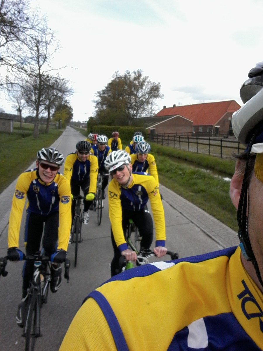 We gaan onderweg met 12 man Gerwin, Henk, Mark, Erik, Bart, Mathijs, Geert, Geert, Gerrit, Paul, Wim en mezelf en rijden netjes op de nieuwe manier Rijssen uit en hebben er al direct de gang in. Er is een