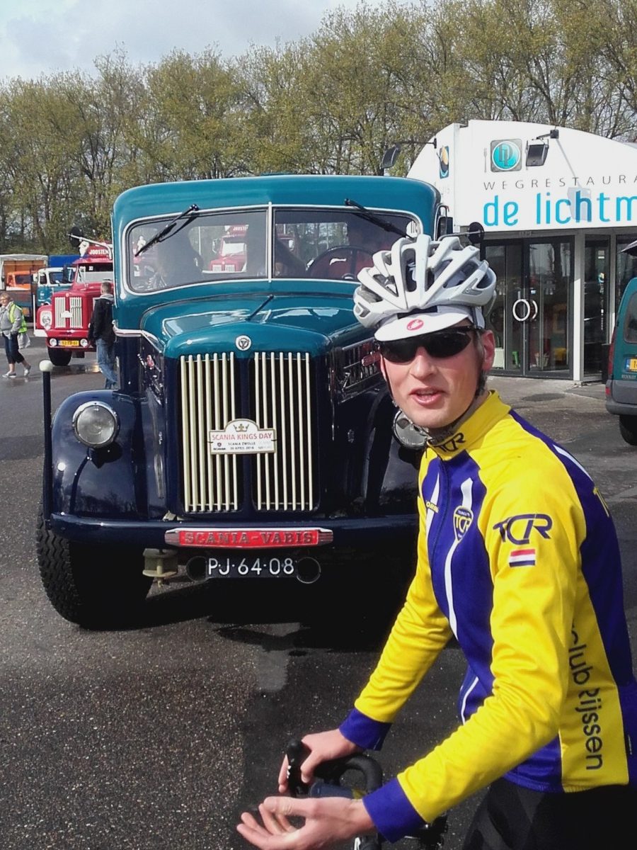 Verder maar weer en we komen nu over wegen waar we niet vaak of zelfs nog nooit zijn geweest. Onze TL heeft een paar mooie weggetjes gevonden om na Staphorst te hebben aangetikt bij de Lichtmis koffie te kunnen drinken. Hier op de parkeerplaats staan een heleboel oldtimer vrachtauto’s die vertrekken voor ook een rondje. Geert Danneberg staat met zijn mond open naar adem te happen als een pinguïng die in ademnoot op een ijsschots zit. Wij zitten dan ook al aan de koffie als hij met rode oortjes binnen komt en verbaal helemaal lam is geslagen door al dat moois.