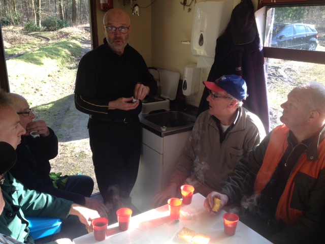 Vandaag, 5 maart is de redactie op bezoek geweest bij het Project Aanleg MTB Rijssen. Dit naar aanleiding van diverse geluiden uit de toerfietssamenleving. Zo zou de stemming opperbest zijn, maar ook regelmatig onder druk staan door een te hoge werkdruk. Nu kan werkdruk best wel hoog lijst, als de werklast maar laag is. M.a.w. je kunt het heel druk hebben met weinig. Derhalve een klein onderzoekje door de redactie. Bij aankomst wordt ondergetekende gelijk in de watten gelegd en een mok dampende koffie aangeboden, Kyra, die de stukjes tekst altijd uittikt, krijgt een lekker stuk koek, dat eigenlijk voor de werkploeg bestemd is. Ze is er blij mee.