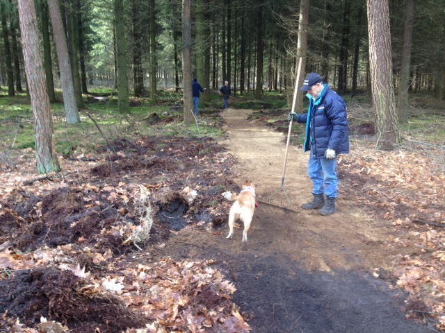 Beetje bijharken, wortels uit het pad zagen of hakken, enz.